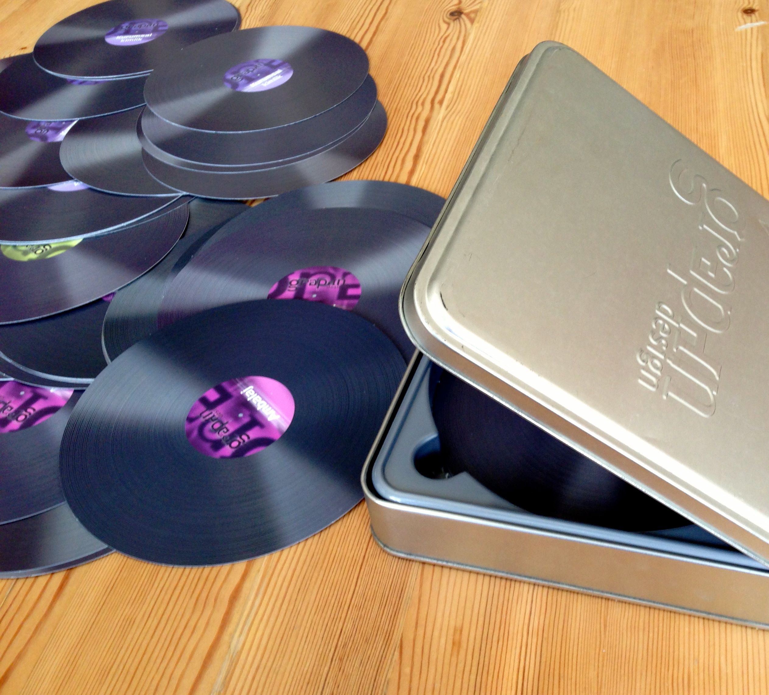 Inhouse agency archive and corporate portfolio for Grahn Design -a local creative agency serving for both local and international brands. The corporate identity of Graphn Design was built around an orchestra. So we placed the former works on one side of records and labeled them on the other side and got them together in a box. A limited edition of this box was produced in form of a turntable.
